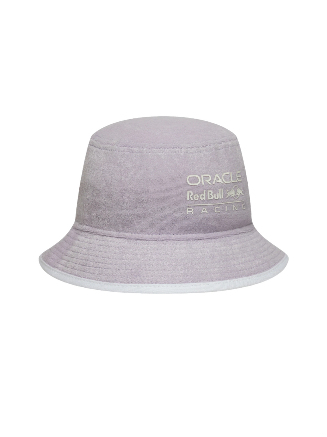 Show your passion for F1™ and Oracle Red Bull Racing with this stylish terry cloth Lilac Pantone bucket hat. Designed for ultimate comfort and a relaxed, sporty look, this hat is perfect for race weekends, casual outings, or summer days. The lavender-toned fabric and embroidered Oracle Red Bull Racing logo on the front make it a must-have accessory for any fan.