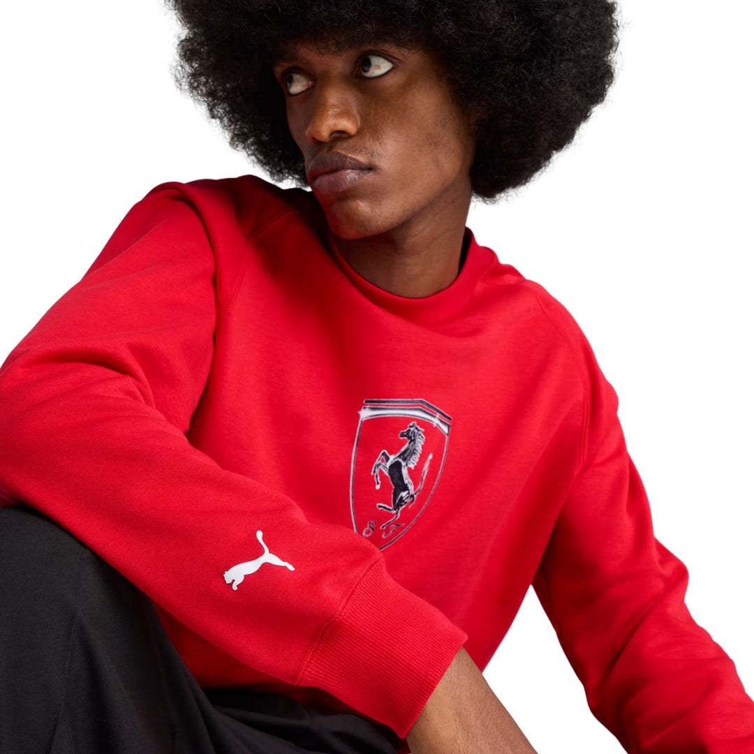 Elevate your everyday look with the Scuderia Ferrari Race Big Shield Men’s Sweatshirt – a bold expression of motorsport passion and premium streetwear style. Designed by Puma in collaboration with Scuderia Ferrari, this sweatshirt features the iconic Ferrari Shield logo front and center, making it the perfect choice for fans who want to represent the Prancing Horse in comfort and confidence.