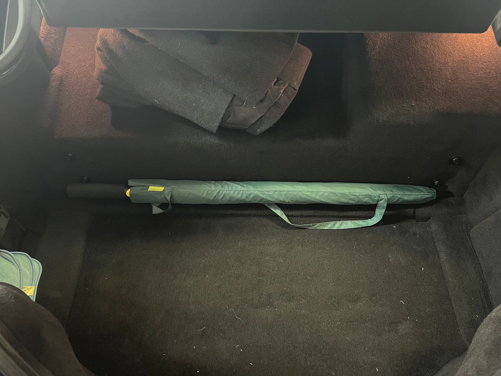 It fits really well in the trunk space of my Aston Martin v8 vantage s. The only thing I think could be better is a lock in the up position on the umbrella and possibly two inches longer to secure in my fasteners more securely, but I’m going to machine an extension for the handle to handle that. Super nice construction and matches the car well. All in all, I would definitely buy again :)