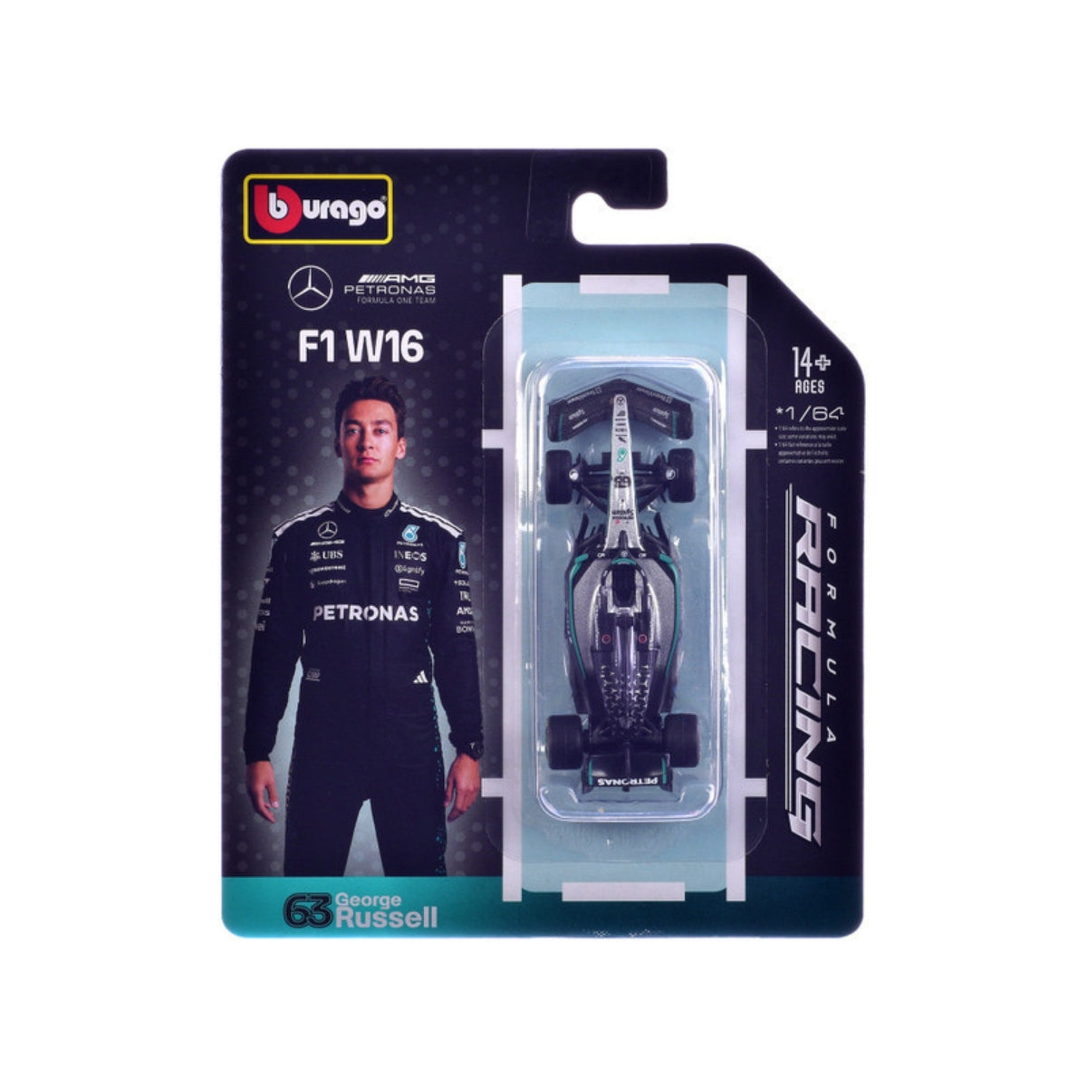Bring Formula 1™ performance to your collection with this officially licensed Mercedes-AMG Petronas F1 W16 die-cast model, driven by George Russell (#63). Produced by Bburago, this 1:64 scale replica captures the sleek design, precision, and innovation of Mercedes’ Formula 1 machinery in impressive detail.