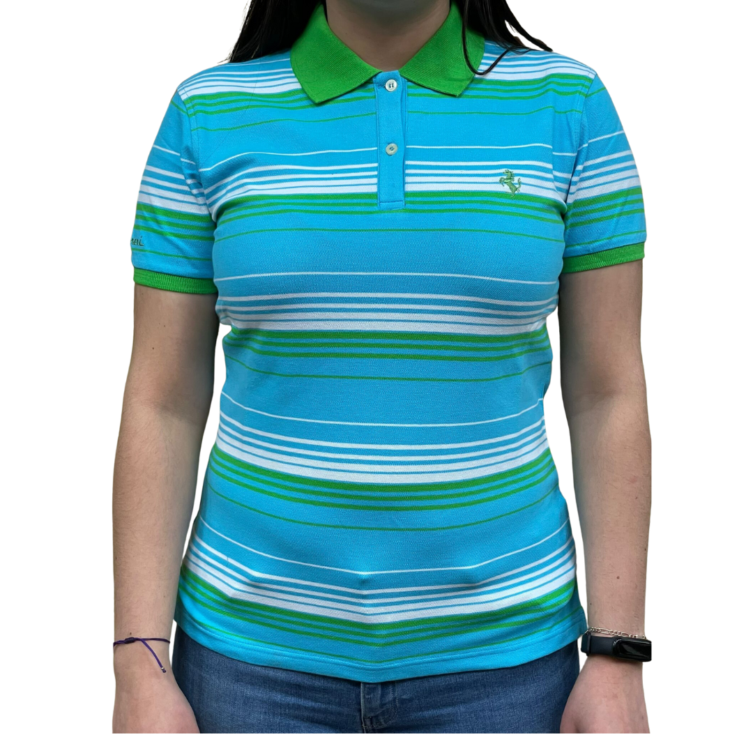 Officially Licensed Ladies Ferrari Cavallino Rampante Stripe Polo Shirt XS Turquoise