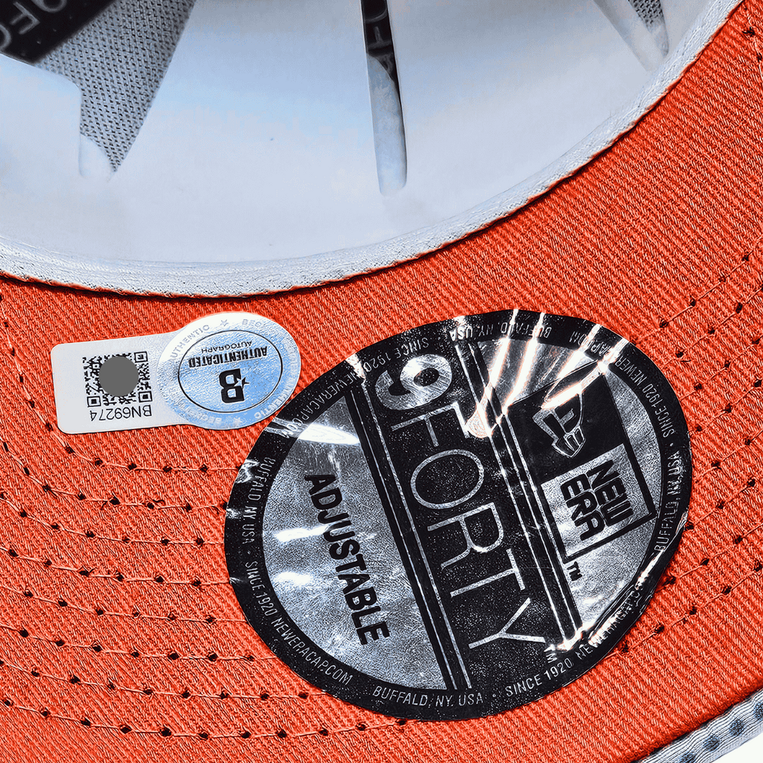 - Autocollant d'authentification Beckett en ligne inclus : garantit l'authenticité de la signature, ce qui en fait un investissement sûr pour les collectionneurs. (Exemple d'image ci-joint – L'hologramme authentique est apposé sur la casquette, sous le bord.)
