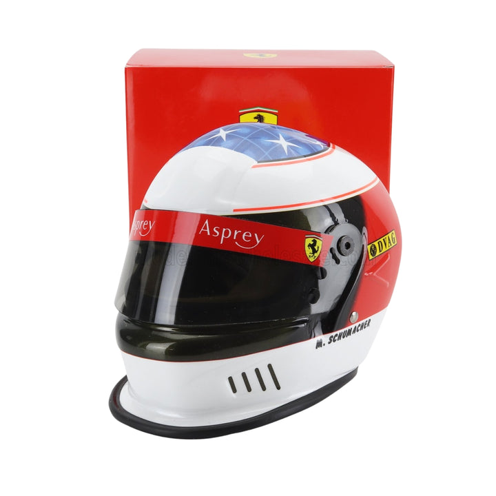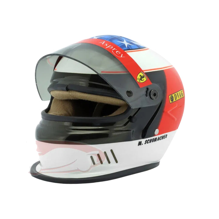 Crafted with precision, this collector’s piece features the authentic Scuderia Ferrari colors and sponsor detailing of the original helmet. Its compact 1:2 scale makes it perfect for display on a desk, shelf, or in a memorabilia collection, while still capturing the prestige and aura of Schumacher’s race-winning gear.