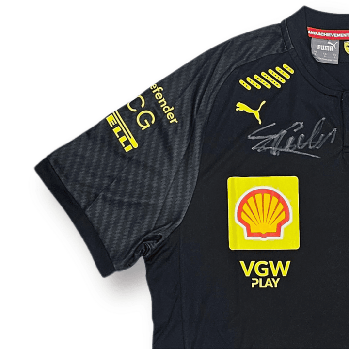 - Officiellement signé par Charles Leclerc : Charles a signé ce t-shirt sur la poitrine droite avec un joli marqueur blanc « Sharpie »