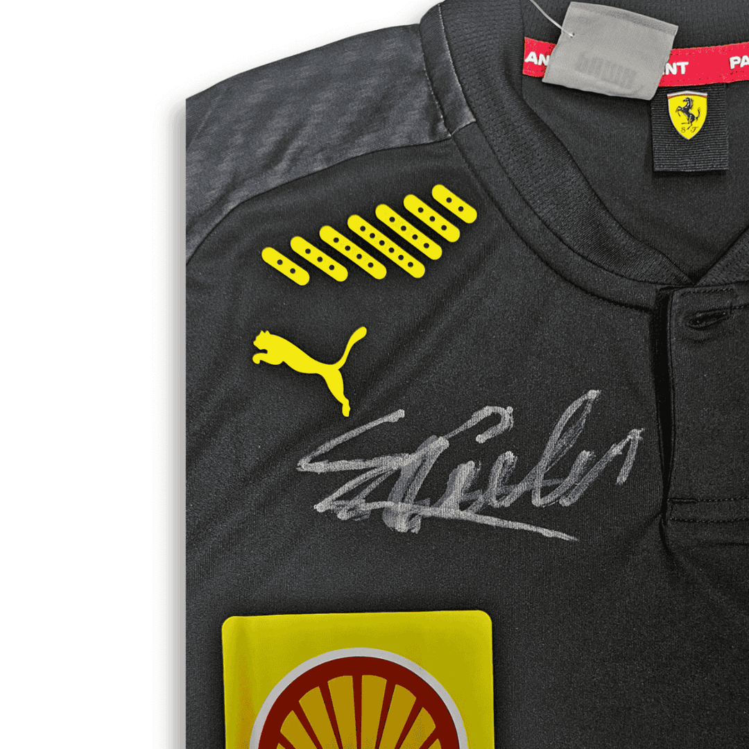 Célébrez la saison 2024 de Formule 1™ avec ce rare t-shirt noir signé à la main par Charles Leclerc, édition spéciale Grand Prix Ferrari de Monza . Conçu pour les vrais tifosi et les collectionneurs, ce t-shirt en édition limitée est un incontournable, offrant un aperçu unique de la célèbre course victorieuse de Ferrari sur son sol italien.